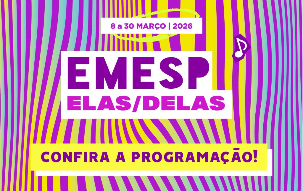 De 8 a 30 de março, a EMESP Tom Jobim promove o Mês Elas/Delas 2026, com uma programação especial que transforma a Escola em palco de encontros, criações e reflexões. Com atividades gratuitas e abertas ao público, a agenda reúne concertos, bate-papos, oficinas e apresentações que destacam a inventividade e a presença marcante das mulheres na música e nas artes.